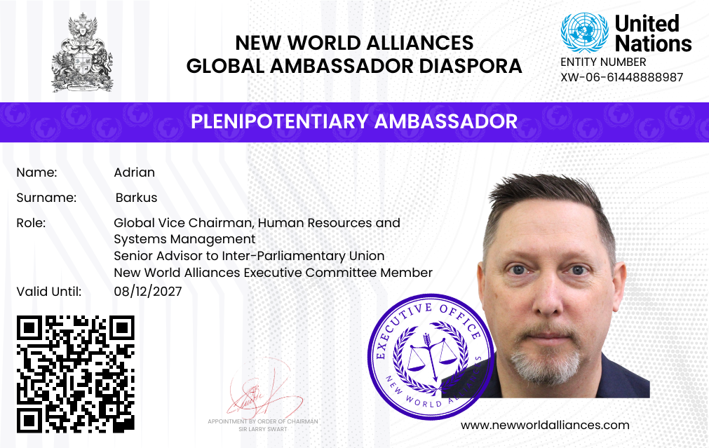 This Ambassador is on assignment from New World Alliances, Global Ambassador Diaspora (GAD) into the International Maritime Organisation. Click button to view the official documents.
