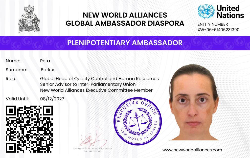 This Ambassador is on assignment from New World Alliances, and Global Ambassador Diaspora (GAD) into the Food and Agriculture Organization. Click button to view the official documents.